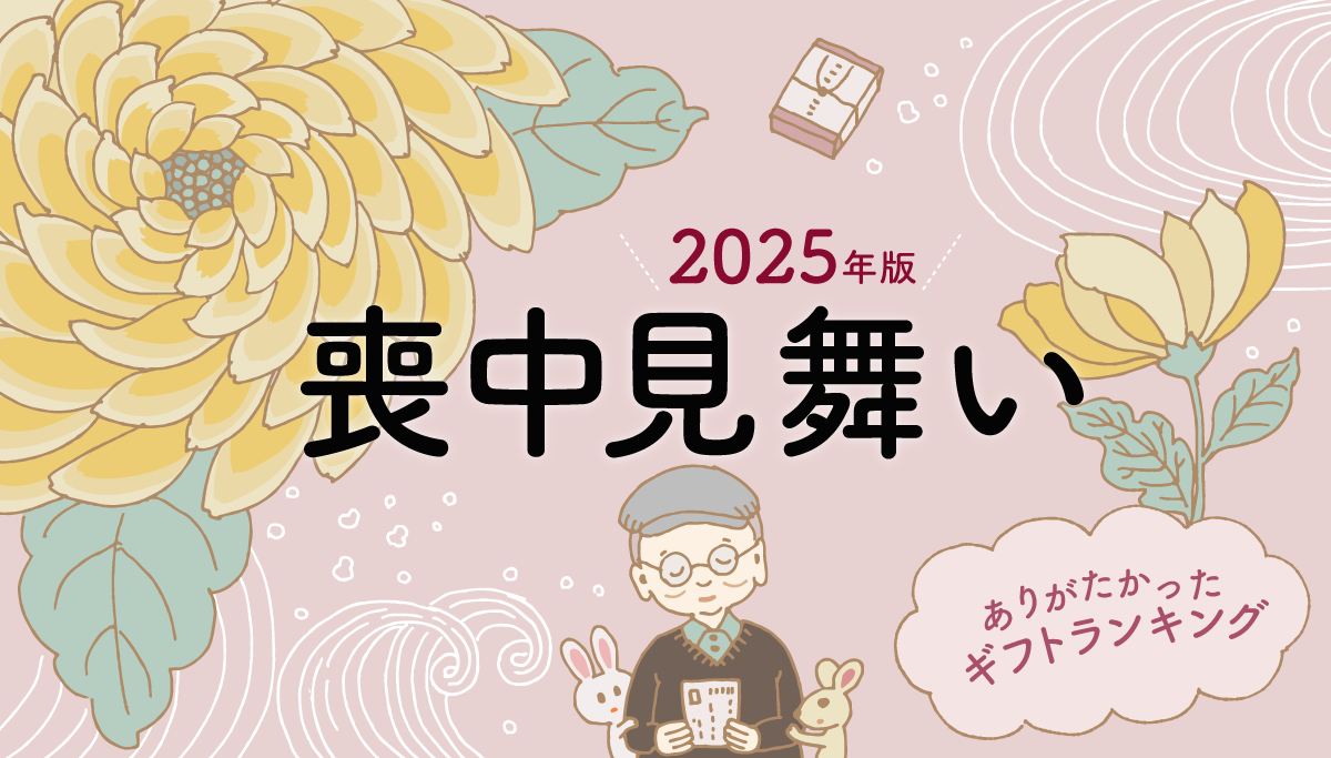 喪中見舞いとは、喪中はがきをもらった方へ贈るお悔やみ状や品物のことです。この記事では、最新のアンケート調査でわかった喪中見舞いでお喜びいただけるギフトをランキングで紹介します。あわせて、喪中見舞いって何? いつどんな品物を贈ればいいの? といった喪中見舞いの基本的なマナーについてもわかりやすく解説しています。