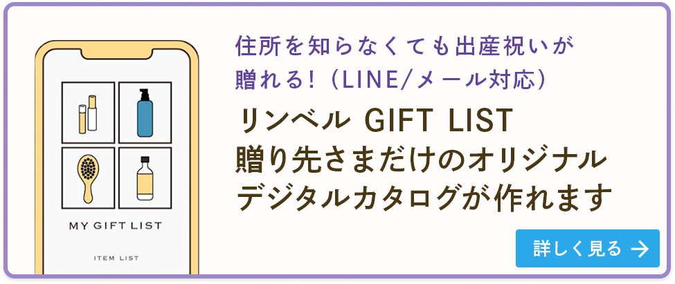 もし贈り先さまの住所がわからない場合は、「GIFT LIST」がおすすめです。とくに、会社の同僚に贈るというような場合、普段は近しい関係であってもご自宅の住所までは知らないことが多いでしょう。さらに、会社内でのギフト交換は周囲の目が気になることもありますし、妊婦の方に重いものを持たせたくないという配慮も必要です。でも、「GIFT LIST」なら、これらの心配を解消できます。
