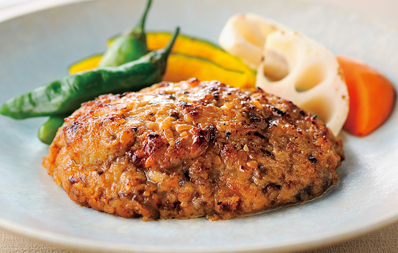 山形県産の黒毛和牛、米沢牛だけを100%使用した贅沢なハンバーグ。生のみじん切りタマネギに椎茸、酒粕を加えて、風味豊かに仕上げました。1個ずつパウチになっているので、冷凍のまま湯煎で10分加熱するだけ。脂の融点が低い霜降り肉を使うハンバーグは、焼き方にコツが要りますが、手軽にベストな調理が可能です。粗挽きのお肉と肉汁がぎっしりの、やわらかでジューシィなハンバーグ。旨みを凝縮した和風味をお楽しみください。