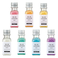 フランスのブルターニュでとれた自然塩のカラフルなバスソルト。その日の気分に合わせて7種類の香りをお楽しみ頂けます。