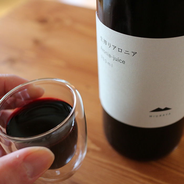 アロニアを100%使用した飲料です。渋みを和らげたフルーティな飲み口が特徴で、炭酸水やミルク、お酒などで割ってもおいしくお召しあがりいただけます。