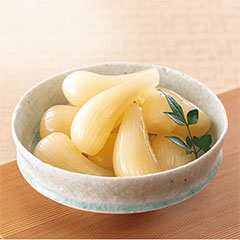 鹿児島県産の大粒のらっきょうを使用しています。いわさきホテルで代々受け継がれるその味は飽きのこないほんのりした甘さと食感が特徴です。ご飯のお供や焼酎のおつまみとしてお楽しみください。「日本の極み」TOPへ