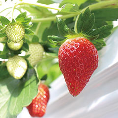 果肉の中まで赤い「紅ほっぺ」は、甘みと酸味のバランスがよく、コクがあるいちごです。こまめな温度管理の中、1粒ずつ丁寧に育てられた紅ほっぺはジューシィで口いっぱいに甘酸っぱさが広がります。「日本の極み」TOPへ