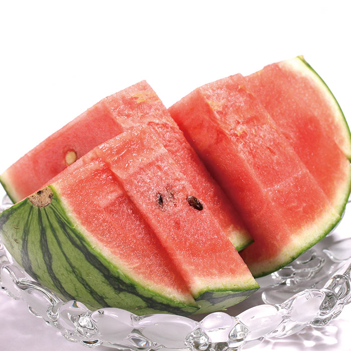 すいか生産高日本一の熊本県で、特に有名な北区植木町で栽培。一般的なすいかの糖度は10.5度~11度ですが、この「大将すいか」は12~13度。食べ頃は4月から初夏にかけて。昼間40℃以上の温度になるハウス栽培により、昼夜の温度差を広げることで甘いすいかに育てます。果皮のはっきりした縞模様が甘みと旨みを示しているように、群を抜いたみずみずしい甘みが魅力です。「日本の極み」TOPへ