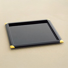 運び盆としてだけでなく、オードブルプレートや敷き盆としても使える真四角のお盆。光沢のある漆黒と角を彩る金色のコントラストが、モダンで上品な印象。