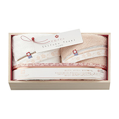 人と人を結ぶご縁の糸を、紡いで織った、ていねい仕上げ。手にした時の軽やかさ、ふんわり感で、違いがわかるタオルです。ほっとするような肌ざわりと、こころを込めて作られた高い品質。いいものをいつまでも使ってほしいから…。そんな想いを込めて、美しい木箱にやさしくそっと詰めました。その上質感は、どんな用途で贈っていただいてもきっと喜ばれる事でしょう。認定番号:第2012-464号
