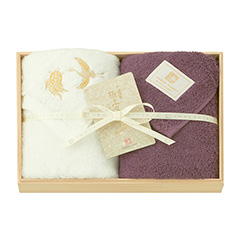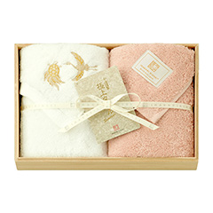 お祝い事の贈り物にもピッタリな木箱入りのタオルは、縁起の良い鶴と亀を金糸で刺繍したタオルのギフトセット。柔らかな肌ざわりと、吸水性・耐久性をバランスよく兼ね備えた今治産のタオルです。高級感あふれる木箱に入っているので、目上の方へ贈り物としてもきっと喜ばれることでしょう。認定番号:第2019-1163号