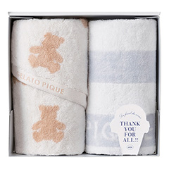ふんわり優しい肌触りと、スイーツのように甘いテイストで人気のホームウェアブランド。大人になっても、やっぱりカワイイものには気分が上がってしまう女子たちに贈りたい。今治で織り上げた高品質なタオルにジェラートピケらしい甘くかわいい色柄を落とし込んだギフトセット。日々の暮らしにふわっと幸せな気分をもたらしてくれる、そんな嬉しさ、優しさを贈ります。認定番号:第2024-1550号/第2024-1551号