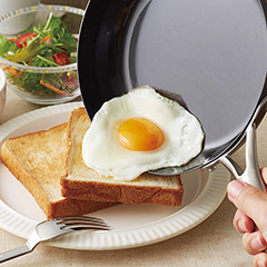 独自の窒化4層加工でさびにくい「スーパー鉄」シリーズ。使い勝手の良い26cm径のフライパンです。