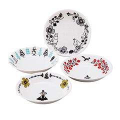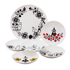 ムーミンの物語はフィンランドの作家であり、画家でもあるトーベ・ヤンソンによってかかれました。1945年に最初の小説「小さなトロールと大きな洪水」が出版され、現在では絵本、コミック、アニメ等様々な形で世界中の人々に愛されています。個性的で楽しいムーミン一家と仲間たちが繰り広げる物語は、ファンタジックな北欧の香りの中にユーモアな哲学的なスパイスが効いた、不思議な魅力にあふれています。こちらは、ビビットカラーで描かれた図柄やムーミンと仲間たちが目を引く「カラー」シリーズ。いつもの食卓に鮮やかな彩をプラスしてくれます。