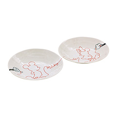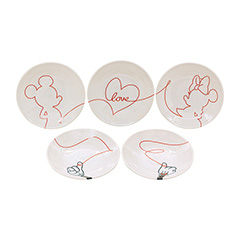永遠の恋人たちを結ぶ運命の赤い糸。「ラブイズ」は、ミッキーマウスとミニーマウスの左手の薬指を結ぶ赤い糸をテーマにしたテーブルウェアです。