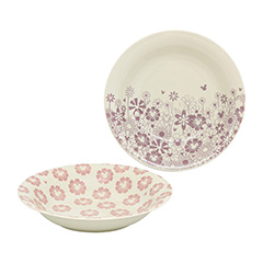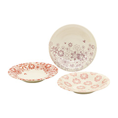 花芯にミッキーマウスのアイコンをあしらったお花が咲き誇るガーリーでモダンなシリーズのパスタプレートセットです。