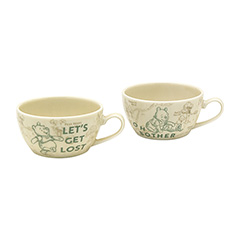 風が心地よく草をなびかせ、清らかな川が流れる100エーカーの森。その美しい森の地図を背景に、プーさんの暮らしがシンプルに描かれたテーブルウェアです。