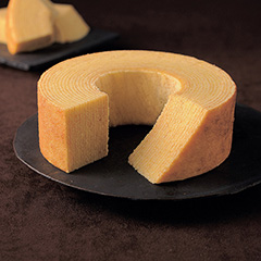 年輪のような形状から日本では贈り物のひとつとして好まれる「バウムクーヘン」。どなたでも召しあがりやすい、やさしいお味に仕上げました。