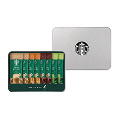お湯を注ぐだけで、スターバックスのラテを自宅で楽しめるセットです。スターバックスのロゴが入ったオリジナル缶に入っているのでギフトにもピッタリです。