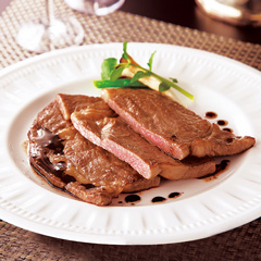 和牛の頂点ともいえる松阪牛を丁寧に手仕込みし、焼き時間と中心温度にこだわって作ったローストビーフ。ウチモモを使用し、赤身が多いのが特徴で、ジューシィな食感と、お肉そのものの旨みを味わえます。「日本の極み」TOPへ