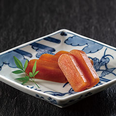 昭和43年(1968)、長崎市鍛冶屋町で創業して以来、長崎伝統の郷土料理「卓袱料理」を中心に、長崎ならではの美味を提供する『長崎卓袱浜勝』自慢の「特製からすみ」をお届けします。恵み豊かな長崎県海域で育ったボラの真子を使用。長崎県産の芋焼酎を塗り込みつつ、一週間塩漬けします。それを、空気が清涼な早朝に天日干しを繰り返し行うことで、しっとりした食感に仕上げました。解凍後、スライスして表面の薄い膜を取ってお召し上がりください。軽く炙ると、より一層おいしさが際立ちます。酒肴はもちろんのこと、細かく刻んでお茶潰けや、バスタの具材としても美味。口当たりなめらかで、芳醇な旨みと風味をご堪能ください。