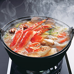 ずっしりぷりぷりの身を豪快に楽しめる「たらばがに」。いずれも、丁寧に手作業で加工したかにを急速冷凍、旨みそのままに、大正13年創業の〈カネシメ高橋水産〉がお届けするかにしゃぶセットです。