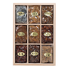 江戸時代から伝わる煮製法を忠実に守って煮あげた「献上はまぐり」をはじめ、素材に吟味した各種志ぐれ煮を詰合せました。