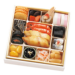 大正十四年創業の〈味の浜藤〉が、半世紀以上にわたり作り続けている「西京漬」をはじめ、味と品質にこだわり、ひとつひとつ丁寧に調理した焼物、煮物など海産物を中心とする純和風のおせち料理。保存料・化学調味料を使用せず仕上げました。西京焼おせち(和風一段重お重付):18品目(2人前が目安です)浜藤蒲鉾(紅)/浜藤蒲鉾(白)/伊達巻/黒豆煮金粉のせ/栗きんとん/紅鮭昆布巻/なます/味付かずの子/銀だら西京焼/えび鬼がら焼/竹の子煮/梅麩煮/ごぼう煮/椎茸煮/人参煮/田作/こはだ粟漬/にしん甘露煮