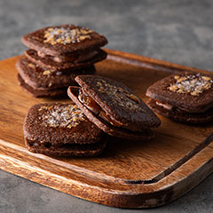 山形県産のサクランボを乾燥させ、サクランボのお酒「キルシュワッサー」とシロップに漬け込み、最大限にサクランボの旨みを引き出し、チョコレートバタークリームと一緒にサクサクのココアクッキーでサンドしました。「日本の極み」TOPへ