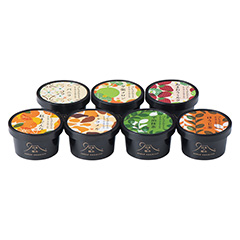 人気の素材を使ったアイスクリームセットです。フレーバーは「チョコレート」・「バニラ」・「あまおうミルク」・「夕張メロン」・「紅まどんな」・「キャラメル」・「宇治抹茶」・「ほうじ茶」の8種類。濃厚でいて後味のいいアイスクリームをお楽しみください。