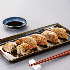 餡の牛肉には山形牛の赤身を100%使用。国産キャベツは粗めのみじん切りでシャキシャキに。ニラとにんにく、生姜で香りをつけ、もちもち感にこだわった熟成皮で、ジューシィな旨みをふんだんに蓄えた贅沢な肉餡を包み込みました。