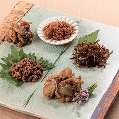 一品ごとに選び抜かれた原料を使用し、旨みを追求した贅沢な珍一品ごとに選び抜かれた原料を使用し、旨みを追求した贅沢な珍味。見た目の美しさはもちろん、食べきりサイズの小瓶が2種類。お味。見た目の美しさはもちろん、食べきりサイズの小瓶が2種類。お酒の肴やご飯のお供としてもお楽しみいただけます。酒の肴やご飯のお供としてもお楽しみいただけます。