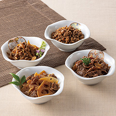 人気の「牛肉すきやき」をはじめ、香り高いごぼうやれんこんとともに煮込んだ牛肉佃煮を詰め合わせました。