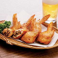 鶏のあらゆる部位から抽出したスープに、旨みの利いたたれを使用した特製の鶏中華。鶏モモ肉・キンカン(卵巣)などの部位をふんだんに抽出した、丸ごと“鶏”が味わえる鶏中華。岩塩と醤油を使ったたれは、黄金色に輝く鶏の旨みが凝縮した絶品スープです。