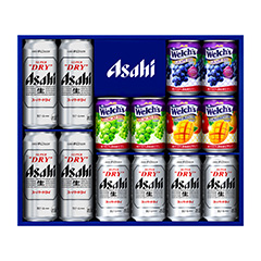 アサヒビールの旗鑑ブランドであるスーパードライと、飲料ギフトの定番商品であり高品質が特徴のウェルチブランドとの組み合わせ。家族で楽しめるギフトセットです。