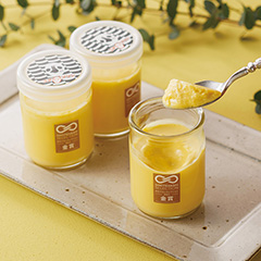純国産鶏に北海道原料を用いた餌を与えるなど、こだわってつくられた卵の卵黄のみを使用して作られた濃厚なプリンです。なめらかなくちどけが特徴で、卵のコクを感じられます。