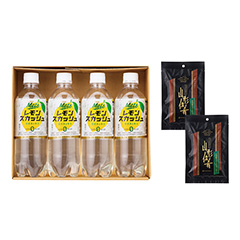 さわやかなレモンの香りと強炭酸。「食事から摂取した脂肪の吸収を抑え、食後の血中中性脂肪の上昇を穏やかにする」難消化性デキストリンを配合した機能性表示食品のレモンスカッシュと、山形の豊かな自然で育った庄内豚のジャーキーをセットでお届けします。