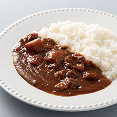 黒毛和牛を100%使用し、国産の野菜を加えて煮込みました。素材の旨みと数種類のスパイスが絶妙な辛口カレーです。「日本の極み」TOPへ