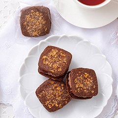 山形県産のサクランボを乾燥させ、サクランボのお酒「キルシュワッサー」とシロップに漬け込み、最大限にサクランボの旨みを引き出し、チョコレートバタークリームと一緒にサクサクのココアクッキーでサンドしました。