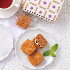 明治10年(1877年)創業、140有余年の歴史を誇る〈本高砂屋〉。伝統を重んじつつも、時代に合わせて革新性を発揮することでお客様に愛されてきました。空気のようにサクッと軽い食感のエコルセを三角、短冊、丸型に焼き上げました。形によって異なる口当たりをお楽しみください。