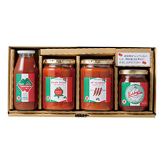 濃厚な甘みとすっきりとした酸味をあわせ持ち、栄養価も高く「昔のトマトの味がする」と大評判の「和みトマト あかまる」。そんな自慢のトマトの味わいをシンプルに感じられる2種類のトマトソースに、フルーティな甘さとさわやかな酸味のバランスがいいケチャップ、「あかまる」をまるごと満喫していただけるジュースを詰め合わせてお届けします。