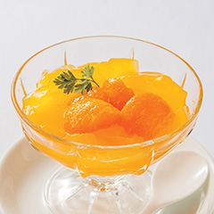 熊野産の柑橘類を使ったジュースで有名な〈夢工房くまの〉の完熟温州みかんがまるごと1個入ったゼリー。周囲のゼリーも同じ温州みかんのストレートジュースを使用した、ジューシーでさわやかな甘みのひんやりデザートをお楽しみください。