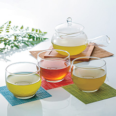 茶葉の香りと旨みを堪能できる「煎茶」に、国産の小さな玄米を用いて香ばしさを際立たせた「抹茶入り玄米茶」。それに、芳香を何より大事にしてじっくり焙煎した「ほうじ茶」の詰め合わせで、水で抽出できるよう製造工程の最後に火入れを行なっています。これらの銘茶を風呂敷に包んでお届けします。