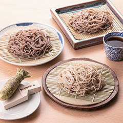 木曽御岳山麓水系のやわらかな水で作った信州そば詰合せ。麺に凹凸をつける独自の「乱れづくり」をほどこした、もちっと跳ねるような新食感の「霧しなそば」はじめ、やぶ・更科と3種のお蕎麦が楽しめます。