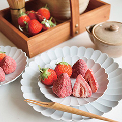 サクッとした食感のフリーズドライ苺と、果実の中にたっぷりと浸み込ませたホワイトチョコレートの持つ、しっとりと甘い口どけが同時に楽しめる新食感が特徴です。