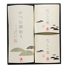 こだわりの絹削りと、かつお節の微粉末が入った味わい深いだしの素の詰合せです。