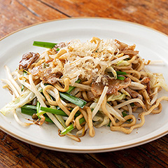 焼そばのために作られた甘みと酸味のバランスがとれたトリイの焼そばソースを全粒粉入りの麺によく絡めてお召し上がりください。