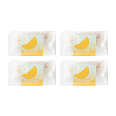 愛媛県今治市の綱敷天満神社の境内にある梅林から望む内海の美しい昼の凪をイメージに名付けられたブランド名〈ひる凪〉。華やかな見た目に加えて地元に根ざした和菓子を作っています。「みか月」は愛媛県産みかんの皮のピールをバタークリームと小倉餡と一緒に挟んだどら焼きです。みかんピールの苦みと柑橘のほんのりと香る大人の味をお楽しみください。
