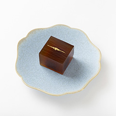 愛媛県今治市の綱敷天満神社の境内にある梅林から望む内海の美しい昼の凪をイメージに名付けられたブランド名〈ひる凪〉。華やかな見た目に加えて地元に根ざした和菓子を作っています。求肥餅の中に入った梅の酸味とミルク餡の甘みが調和した見た目にも美しい一品です。