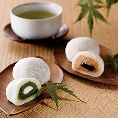 抹茶ときな粉の風味をさらに引き立てるため、真ん中にクリームを包み込んだサラリとした味わいの水まんじゅうです。冷やしてお召しあがりいただくと、サッパリした白あんと合わせた濃厚な抹茶ときな粉の風味や、ツルンとしたのどごしをお楽しみいただけます。#おうちごはん応援 #ジャストプライスセレクション #ジャストプライスその他