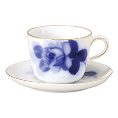 大正8年の創立以来、孤高の地位に君臨する〈大倉陶園〉。世界に"オークラ・ホワイト"として知られる純白の冴え、熟練の技が表現する華麗な絵付けは、高級白磁としての気高さに満ちています。凛とした白磁の透明感のなかに、深みのあるブルーで薔薇が表現された「ブルーローズ」シリーズ。デザイン誕生から今なお愛され続けているの代名詞ともいえる絵柄です。