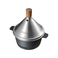 蓋の穴からフワリと煙が流れる特徴的なデザインで、香りだけでなくのんびりしたムードまで味わえる、テーブルに置いて使える燻製器です。燻煙量の調節機能が付いた蓋や、燻製チップ専用のお皿も付いており、チップの継ぎ足しなど出し入れもスムース行えます。ソロキャンプからホームパーティーといった人が集う場面まで、気軽に本格的な燻製を楽しむことが出来ます。