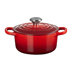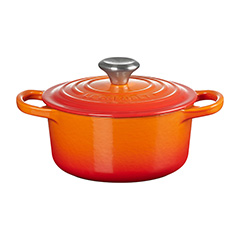 「ココット・ロンド」は、ル・クルーゼを代表する鋳物ホーロー鍋。煮る、炊く、蒸す、焼く、炒める、揚げる、さまざまな調理法が1つで出来る万能なお鍋です。ガス・直火、IHクッキングヒーター、ハロゲンヒーターはもちろん、オーブンにも対応しています。優れた熱伝導でゆっくりムラなく熱が入り、食材が煮崩れせず、甘みやうまみを最大限に引き出します。また、蓄熱性にも優れているため、料理が冷めにくく、温かい料理のおいしさを一層引き立てます。毎日使っても100年持ちこたえる丈夫さで「100年鍋」と例えられるほど一生使い続けられるお鍋なので、新しい生活を迎える方への結婚祝いや出産祝い、引越し祝いなど慶事のギフトにも多く選ばれています。