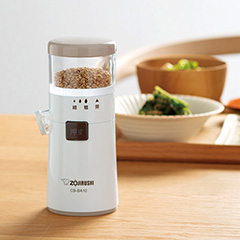 手軽にごまがすれる、乾電池式ごますり器。お好み併せてすり加減が調節できる「3段階粗さ調節」つき。